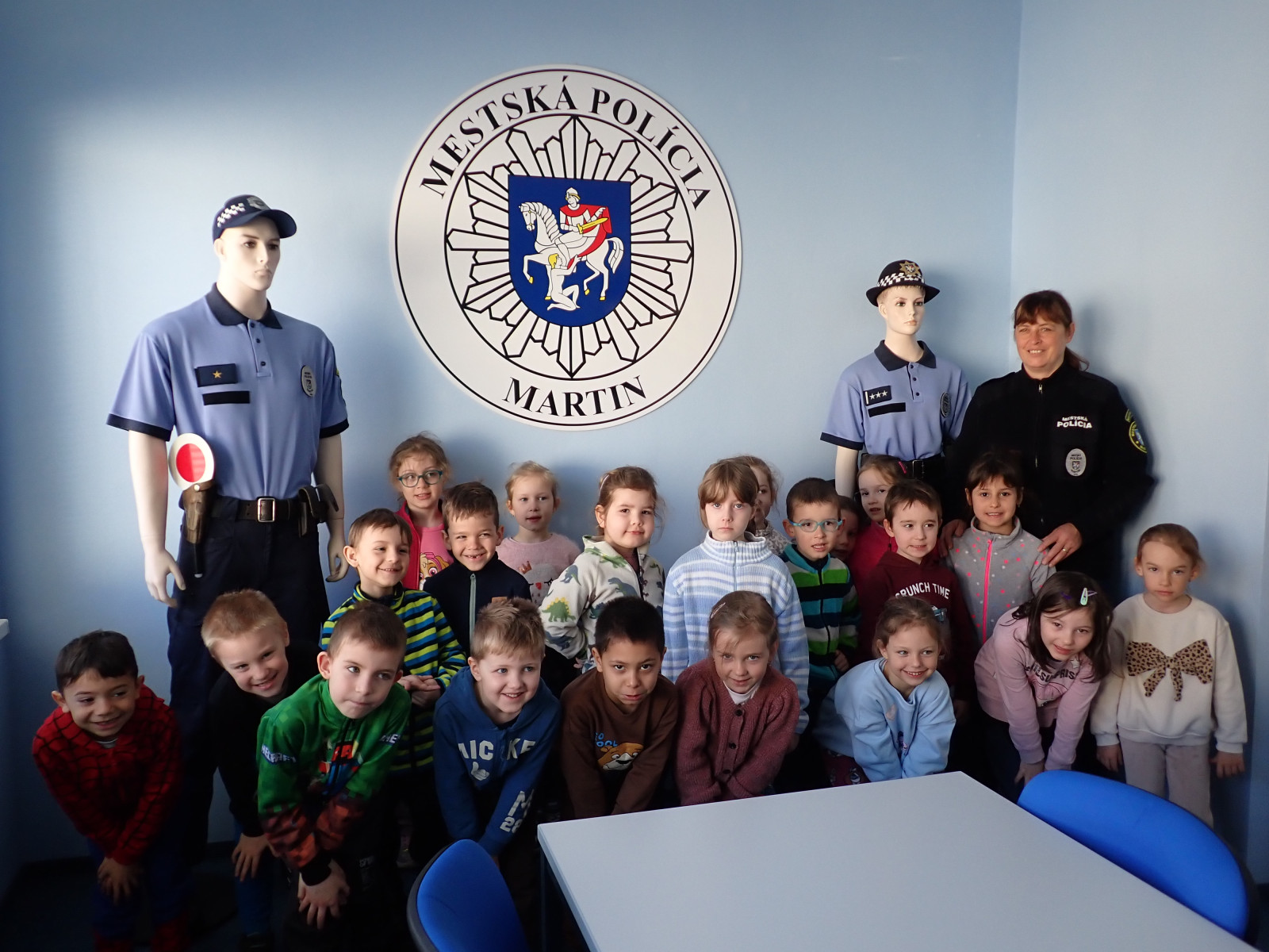 Exkurzia na oddelenie Mestskej polície bola pre nás nezabudnuteľným zážitkom. Mali sme možnosť nahliadnuť do práce policajtov, spoznať ich každodenné povinnosti a dozvedieť sa, ako nám pomáhajú udržiavať poriadok a bezpečnosť v meste.
