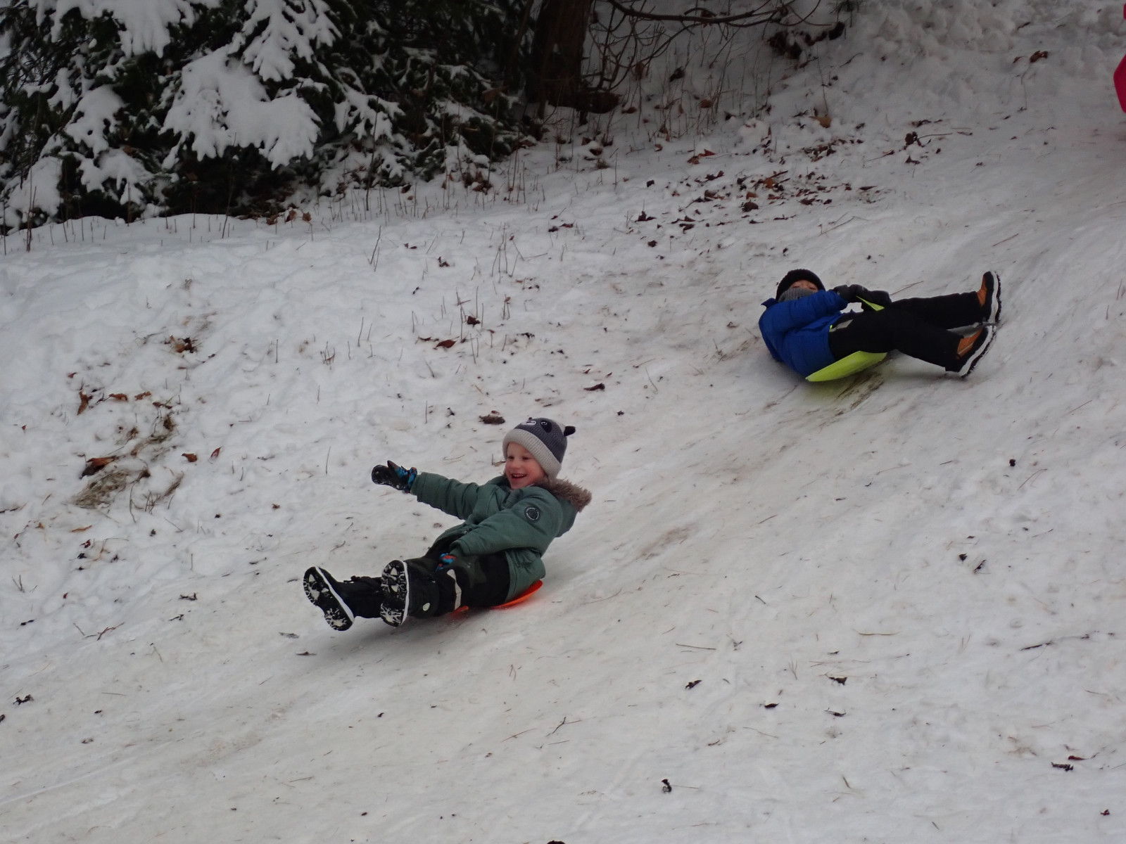 Konečne napadlo veľa snehu a na kopci to bola veľká zábava.